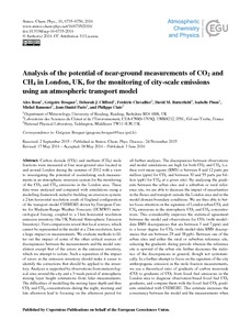 Boon, A., Broquet, G., Clifford, D. J., Chevallier, F., Butterfield, D. M., Pison, I., Ramonet, M., Paris, J.-D. and Ciais, P. (2016) Analysis of the potential of near-ground measurements of CO2 and CH4 in London, UK, for the monitoring of city-scale emissions using an atmospheric transport model. Atmospheric Chemistry and Physics, 16 (11). pp. 6735-6756. ISSN 1680-7316 doi: 10.5194/acp-16-6735-2016