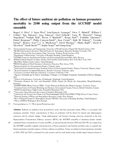 *Anenberg, S. C., West, J. J., Yu, H., Chin, M., Schultz, M., Bergmann, D., Bey, I., Bian, H., Diehl, T., Fiore, A., Hess, P., Marmer, E., Montanaro, V., Park, R., Shindell, D., Takemura, T., and Dentener, F.: Impacts of intercontinental transport of anthropogenic fine particulate matter on human mortality. Air. Qual. Atmos. Health., doi: 10.1007/s11869-014-0248-9, 2014.