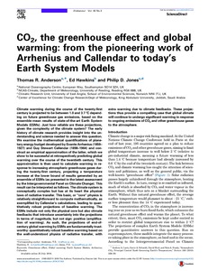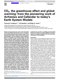 Anderson, T. R., Hawkins, E. ORCID: https://orcid.org/0000-0001-9477-3677 and Jones, P. D. (2016) CO2, the greenhouse effect and global warming: from the pioneering work of Arrhenius and Callendar to today's Earth System Models. Endeavour, 40 (3). pp. 178-187. ISSN 0160-9327 doi: 10.1016/j.endeavour.2016.07.002