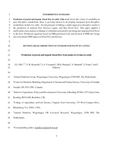 Prediction of portal and hepatic blood flow from intake level data in cattle