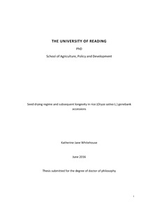 Whitehouse, K. J. (2016) Seed drying regime and subsequent longevity in rice (Oryza sativa L.) genebank accessions. PhD thesis, University of Reading.