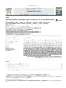 Complex computer models are used to predict how ecological systems respond to changing environmental conditions or management actions. Communicating these complex models to non-scientists is challenging, but necessary, because decision-makers and other end users need to understand, accept, and use the models and their predictions. Despite the importance of communicating effectively with end users, there is little guidance available as to how this may be achieved. Here, we review the challenges typically encountered by modellers attempting to communicate complex models and their outputs to managers and other non-scientist end users. We discuss the implications of failing to communicate effectively in each case. We then suggest a general approach for communicating with non-scientist end users. We detail the specific elements to be communicated using the example of individual-based models, which are widely used in ecology. We demonstrate that despite their complexity, individual-based models have characteristics that can facilitate communication with non-scientists. The approach we propose is based on our experiences and methods used in other fields, but which until now have not been synthesised or made broadly available to ecologists. Our aim is to facilitate the process of communicating with end users of complex models and encourage more modellers to engage in it by providing a structured approach to the communication process. We argue that developing measures of the effectiveness of communication with end users will help increase the impact of complex models in ecology.