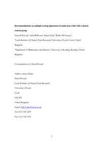 Howard, D. R., Brown, J. M., Todd, S. ORCID: https://orcid.org/0000-0002-9981-923X and Gregory, W. M. (2018) Recommendations on multiple testing adjustment in multi-arm trials with a shared control group. Statistical Methods in Medical Research, 27 (5). pp. 1513-1530. ISSN 0962-2802 doi: 10.1177/0962280216664759