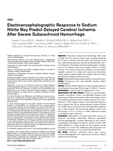 Garry, P. S., Rowland, M. J., Ezra, M., Herigstad, M., Hayen, A., Sleigh, J. W., Westbrook, J., Warnaby, C. E. and Pattinson, K. T. (2016) Electroencephalographic response to sodium nitrite may predict delayed cerebral ischemia after severe subarachnoid hemorrhage. Critical Care Medicine, 44 (11). e1067-e1073. ISSN 1530-0293 doi: 10.1097/CCM.0000000000001950