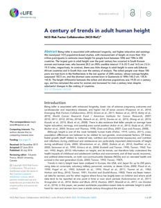 NCD Risk Factor Collaboration (NCD-RisC) and Markey, O. (2016) A century of trends in adult human height. eLIFE, 5 (e13410). ISSN 2050-084X doi: 10.7554/eLife.13410
