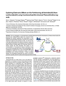 Edwards, A. C., Wagner, C., Geist, A., Burton, N. A., Sharrad, C. A., Adams, R. W., Pritchard, R. G., Panak, P. J., Whitehead, R. C. and Harwood, L. M. ORCID: https://orcid.org/0000-0002-8442-7380 (2016) Exploring electronic effects on the partitioning of actinides(III) from lanthanides(III) using functionalised bis-triazinyl phenanthroline ligands. Dalton Transactions (45). pp. 18102-18112. ISSN 1364-5447 doi: 10.1039/C6DT02474B
