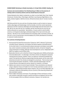 WG3 discussed both the pros and cons of existing schemes as well as metrics to measure relative advantages and disadvantages. We first provide a list of the current operational techniques and their respective advantages and disadvantages that were discussed in the WG. We do not claim that the list is complete, and we note that the pros and cons are neither exhaustive nor quantitative. Nevertheless, it may be useful to note the WG’s consensus on the general advantages and disadvantages of the most commonly-used schemes. We then list our recommendations for evaluating model uncertainty schemes. At the end is a short list pertaining to recommendations for further development of methods to represent model uncertainty.