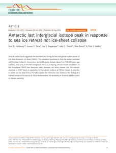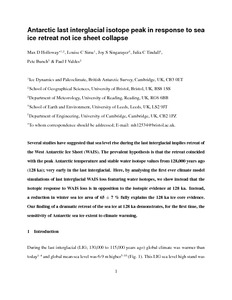 Holloway, M. D., Sime, L. C., Singarayer, J. S., Tindall, J. C., Bunch, P. and Valdes, P. J. (2016) Antarctic last interglacial isotope peak in response to sea ice retreat not ice-sheet collapse. Nature Communications, 7. 12293. ISSN 2041-1723 doi: 10.1038/ncomms12293