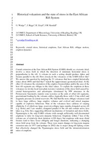 Wadge, G., Biggs, J., Lloyd, R. and Kendall, J.-M. (2016) Historical volcanism and the state of stress in the East African Rift System. Frontiers in Earth Science, 4. 86. ISSN 2296-6463 doi: 10.3389/feart.2016.00086