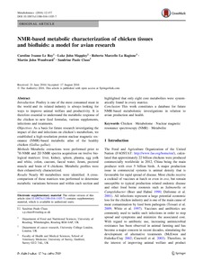 Le Roy, C. I., Mappley, L. J., La Ragione, R. M., Woodward, M. J. and Claus, S. P. (2016) NMR-based metabolic characterization of chicken tissues and biofluids: a model for avian research. Metabolomics, 12 (10). 157. ISSN 1573-3890 doi: 10.1007/s11306-016-1105-7