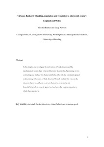 Virtuous bankers? Banking, reputation and regulation in nineteenth century England and Wales.