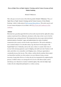 Blakemore, R. J. ORCID: https://orcid.org/0000-0002-0281-6826 (2017) Pieces of eight, pieces of eight: seafarers’ earnings and the venture economy of early modern seafaring. Economic History Review, 70 (4). pp. 1153-1184. ISSN 1468-0289 doi: 10.1111/ehr.12428