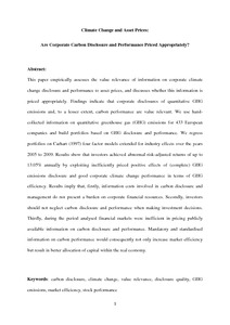 Climate change and asset prices: are corporate carbon disclosure and performance priced appropriately?