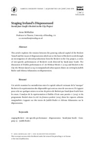 McMullan, A. ORCID: https://orcid.org/0000-0002-2531-3746 (2017) Staging Ireland's Dispossessed: Sarah Jane Scaife's Beckett in the City Project. Samuel Beckett Today / Aujourd'hui, 29 (2). pp. 361-374. ISSN 0927-3131 doi: 10.1163/18757405-02902012