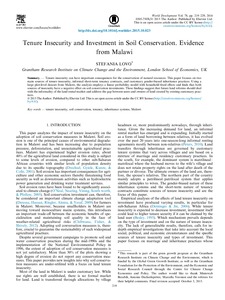 Lovo, S. ORCID: https://orcid.org/0000-0001-6231-4142 (2016) Tenure insecurity and investment in soil conservation: evidence from Malawi. World Development, 78. pp. 219-229. ISSN 0305-750X doi: 10.1016/j.worlddev.2015.10.023