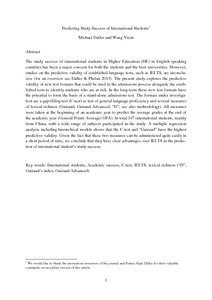 Daller, M. and Wang, Y. (2017) Predicting study success of international students. Applied Linguistics Review, 8 (4). pp. 355-374. ISSN 1868-6311 doi: 10.1515/applirev-2016-2013
