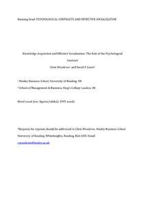 Woodrow, C. and Guest, D. E. (2017) Knowledge acquisition and effective socialization: the role of the psychological contract. Journal of Occupational and Organizational Psychology, 90 (4). pp. 587-595. ISSN 2044-8325 doi: 10.1111/joop.12178