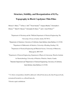 Maher, M. J., Self, J. L., Stasiak, P., Blachut, G., Ellison, C. J., Matsen, M. W., Bates, C. M. and Willson, C. G. (2016) Structure, stability, and reorganization of 0.5 L0 topography in block copolymer thin films. ACS Nano, 10 (11). pp. 10152-10160. ISSN 1936-086X doi: 10.1021/acsnano.6b05390