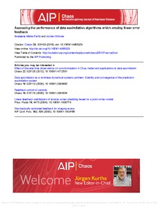 Mallia-Parfitt, N. and Bröcker, J. (2016) Assessing the performance of data assimilation algorithms which employ linear error feedback. Chaos, 26 (10). 103109. ISSN 1089-7682 doi: 10.1063/1.4965029