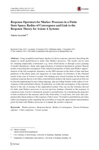 Response operators for Markov processes in a finite state space: radius of convergence and link to the response theory for Axiom A systems.
