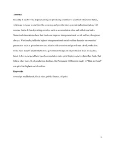Recently it has become popular among oil-producing countries to establish oil revenue funds, which are believed to stabilize the economy and provide inter-generational redistribution. Oil revenue funds deffer depending on rules, such as accumulation rules and withdrawal rules. Numerical simulations show that funds can improve intergenerational social welfare, though not always. Which rule yields the highest intergenerational social welfare depends on countries’ parameters such as gross interest rate, relative risk aversion and growth rate of oil production. Some rules may be unaffordable for a government budget. If oil production does not decline, funds following expenditure-based accumulation rules yield higher social welfare than funds that follow other rules. If oil production declines, the Permanent Oil Income model or “Bird-in-Hand” can yield the highest social welfare.