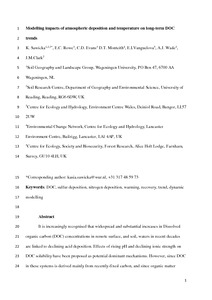 Modelling impacts of atmospheric deposition and temperature on long-term DOC trends.