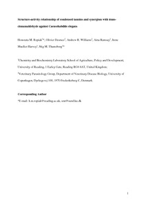 Ropiak, H. M., Desrues, O., Williams, A. R., Ramsay, A., Mueller-Harvey, I. and Thamsborg, S. M. (2016) Structure-activity relationship of condensed tannins and synergism with trans-cinnamaldehyde against Caenorhabditis elegans. Journal of Agricultural and Food Chemistry, 64 (46). pp. 8795-8805. ISSN 1520-5118 doi: 10.1021/acs.jafc.6b03842