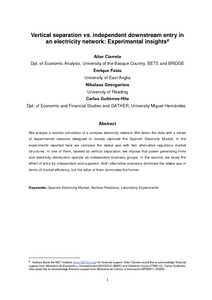 Ciarreta, A., Fatas, E., Georgantzis, N. and Gutiérrez-Hita, C. (2017) Vertical separation vs. independent downstream entry in an electricity network: experimental insights. Electric Power Systems Research, 143. pp. 728-738. ISSN 0378-7796 doi: 10.1016/j.epsr.2016.10.034
