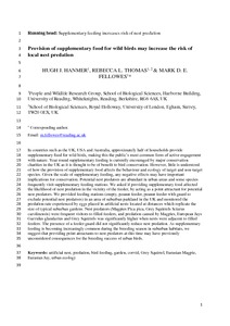 Provision of supplementary food for wild birds may increase the risk of local nest predation.