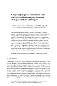 Castro, T., Rothman, J. and Westergaard, M. (2017) Comparing anaphora resolution in early and late Brazilian Portuguese-European Portuguese bidialectal bilinguals. Revista Española de Lingüística Aplicada, 29 (2). pp. 429-461. ISSN 2254–6774 doi: 10.1075/resla.29.2.03cas