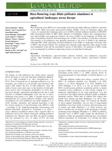 Mass-flowering crops dilute pollinator abundance in agricultural landscapes across Europe.