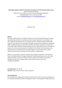Bell, A. R. ORCID: https://orcid.org/0000-0003-4531-0072 and Brooks, C. ORCID: https://orcid.org/0000-0002-2668-1153 (2018) What makes students satisfied? A discussion and analysis of the UK’s national student survey. Journal of Further and Higher Education, 42 (8). pp. 1118-1142. ISSN 1469-9486 doi: 10.1080/0309877X.2017.1349886