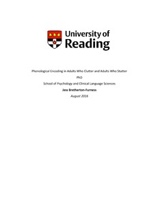Bretherton-Furness, J. (2016) Phonological encoding in adults who clutter and adults who stutter. PhD thesis, University of Reading.