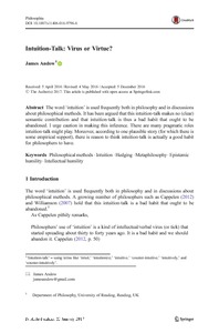 Andow, J. (2017) Intuition-talk: virus or virtue? Philosophia, 45 (2). pp. 523-531. ISSN 1574-9274 doi: 10.1007/s11406-016-9796-6