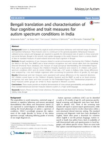 Bengali translation and characterisation of four cognitive and trait measures for autism spectrum conditions in India.