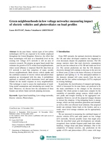 Hattam, L. and Vukadinovic Greetham, D. (2017) Green neighbourhoods in low voltage networks: measuring impact of electric vehicles and photovoltaics on load profiles. Journal of Modern Power Systems and Clean Energy, 5 (1). pp. 105-116. ISSN 2196-5420 doi: 10.1007/s40565-016-0253-0