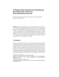 A method of rule induction for predicting and describing future alarms in a telecommunication network.