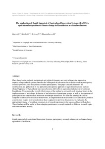 The application of Rapid Appraisal of Agricultural Innovation Systems (RAAIS) to agricultural adaptation to climate change in Kazakhstan: a critical evaluation