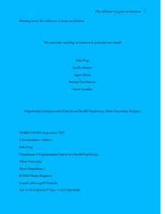 It is often assumed that attention is automatically allocated to stimuli relevant to one’s actual goals. However, the existing evidence for this idea is limited in several ways. We investigated whether words relevant to a person’s current goal influence the orienting of attention even when an intention to attend to the goal-relevant stimuli is not present. In two experiments, participants performed a modified spatial cueing paradigm combined with a second task that induced a goal. The results of the experiments showed that the induced goal led to the orientation of attention to goal-relevant words in the spatial cueing task. This effect was not found for words semantically related to the goal-relevant words. The results provide evidence for motivational accounts of attention, which state that the automatic allocation of attention is guided by the current goals of a person.