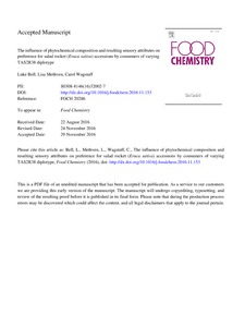 The influence of phytochemical composition and resulting sensory attributes on preference for salad rocket (Eruca sativa) accessions by consumers of varying TAS2R38 diplotype.