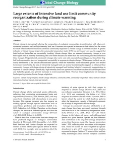Oliver, T. H. ORCID: https://orcid.org/0000-0002-4169-7313, Gillings, S., Pearce-Higgins, J. W., Brereton, T., Crick, H. Q. P., Duffield, S. J., Morecroft, M. D. and Roy, D. B. (2017) Large extents of intensive land use limit community reorganization during climate warming. Global Change Biology, 23 (6). pp. 2272-2283. ISSN 1365-2486 doi: 10.1111/gcb.13587
