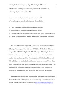 Aleman Banon, J., Miller, D. and Rothman, J. (2017) Morphological variability in second language learners: an examination of electrophysiological and production data. Journal of Experimental Psychology: Learning, Memory & Cognition, 43 (10). pp. 1509-1536. ISSN 0278-7393 doi: 10.1037/xlm0000394
