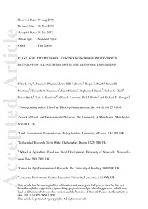 Plant, soil and microbial controls on grassland diversity restoration: a long-term, multi-site mesocosm experiment