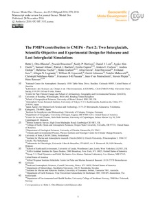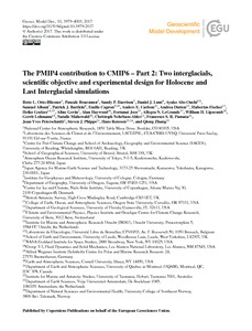 Otto-Bleisner, B. L., Braconnot, P., Harrison, S. P. ORCID: https://orcid.org/0000-0001-5687-1903, Lunt, D. J., Abe-Ouchi, A., Albani, S., Bartlein, P. J., Capron, E., Carlson, A. E., Dutton, A., Fischer, H., Goelzer, H., Govin, A., Haywood, A., Joos, F., Legrande, A. N., Lipscomb, W. H., Lohmann, G., Mahowald, N., Nehrbass-Ahles, C., Pausata, F. S.-R., Peterschmidt, J.-Y., Phipps, S. and Renssen, H. (2017) The PMIP4 contribution to CMIP6 – Part 2: two interglacials, scientific objective and experimental design for Holocene and last interglacial simulations. Geoscientific Model Development, 10 (11). pp. 3979-4003. ISSN 1991-9603 doi: 10.5194/gmd-10-3979-2017