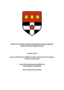 Le Roy, C. (2016) Impact of Tiamulin against brachyspira pilosicoli induced Avian intestinal spirochaetosis. PhD thesis, University of Reading.