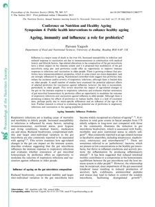 Yaqoob, P. ORCID: https://orcid.org/0000-0002-6716-7599 (2014) Ageing, immunity and influenza: a role for probiotics? Proceedings of the Nutrition Society, 73 (2). pp. 309-317. ISSN 0029-6651 doi: 10.1017/S0029665113003777