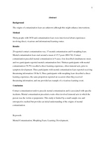 Background The origins of contamination fears are unknown although this might enhance interventions. Method Thirty people with OCD and contamination fears were interviewed about experiences involving direct, vicarious and informational learning routes. Results 29 reported contact contamination was, 17 mental contamination and 6 morphing fears. Mental contamination fears start around a mean of 15.5 years (SD=7.8). Contact contamination preceded mental contamination in 9 cases, four described simultaneous onset, and two participants reported mental contamination first. Thirteen participants with mental contamination (76.5%) recalled a direct learning experience, often immoral acts, prior to symptom development. Three participants with mental contamination fears reported receiving threatening information. Of the 6, Three participants with morphing fears described a direct learning experience, the same proportion reported an occasion when they received threatening information, and one provided an example of a vicarious learning event. Conclusion Contact contamination tends to precede mental contamination and is associated with specific incidents. Mental contamination precedent events often involved immoral acts in which the person was the victim or perpetrator. This study is limited by a small sample size and retrospective method but provides an initial understanding of the origins of mental contamination.