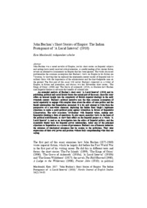 The first part of this essay examines how John Buchan (1875-1940) wrote imperial fiction, which he largely did before the First World War in the first part of his writing career. He did this in different texts and forms: the short stories ‘The Far Islands’ (1899), ‘The Kings of Orion’ (1906), ‘The Grove of Ashtaroth’ (1910a), ‘A Lucid Interval’ (1910b) and ‘The Green Wildebeest’ (1927); the novels The Half-Hearted (1900), A Lodge in the Wilderness (1906), Prester John (1910); in political analysis in The African Colony (1903); and in journalism, in ‘An Imperial Club for London’ (1903). The second part of the essay will analyse ‘A Lucid Interval’ , with pedagogical material on its publishing and metahistory.