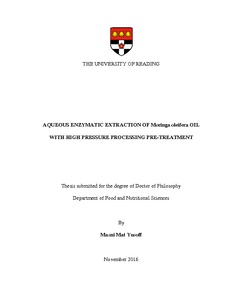 Mat Yusoff, M. (2016) Aqueous enzymatic extraction of moringa oleifera oil with high pressure processing pre-treatment. PhD thesis, University of Reading.