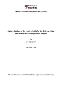 Bevan, W. (2016) An investigation of the required skills for the delivery of low and zero carbon buildings within a region. PhD thesis, University of Reading.